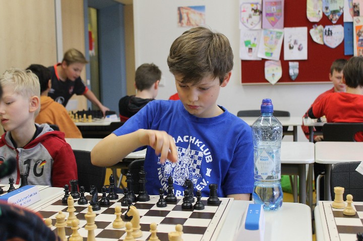 Timon Götz hielt in der Auftaktrunde gegen Markus lange gegen und musste sich sonst nur noch Pablo geschlagen geben. Ansonsten gewann er drei Partien und spielte zweimal Remis, so dass er mit 4 Punkten Zehnter wurde. Paul wurde mehrmals die Bedenkzeit zum Verhängnis und er kam mit 3 Punkten auf Rang 13.