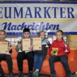 In der U12 behielten drei Spieler bis zur Mittagspause eine weiße Weste: Vincent Wolf (SC Bamberg), Hugo Danninger (Zabo-Eintracht Nürnberg) sowie Samuel Schmitt (SF Windach). Während Samuel in Runde vier dem Neumarkter Andreas Hierl unterlag, beendete Vincent die Erfolgsserie vom topgesetzten Hugo in Neumarkt. Denn dieser hatte nach seinem Triumph in der U10 2017 (6,5/7) und dem Titel im Vorjahr in der U12 (7/7) zuletzt 2016 eine Partie in Neumarkt verloren. Danach bezwang Vincent auch die Verfolger Naum Aumüller (SK Kelheim) sowie Patrick Koch (SK Gräfelfing). Einzig Milo Müller (SC Windischeschenbach) war noch in Schlagdistanz, hatte er doch nur in Runde drei gegen Samuel verloren. Milo gelang es Vincent in der letzten Runde doch noch die erste Niederlage beizubringen und zog nach Punkten gleich. Doch Vincent retteten eineinhalb Buchholz-Punkte Vorsprung den Titel. Rang drei sicherte sich Naum mit 5,5 Punkten vor Hugo, der sich noch Milo geschlagen geben musste, Patrick, Samuel sowie Levin Isbilir (SC Erlangen) mit jeweils 5 Punkten. Bestes Mädchen wurde Sarah Zeisler (SG Fürth) mit 4 Zählern auf Platz 15.