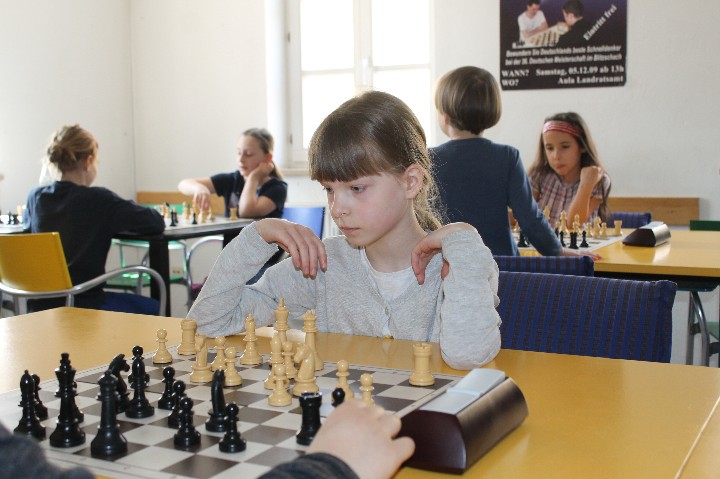 Beim traditionellen Schnellschachturnier des Neumarkter Mädchenschachtags spielten elf Teilnehmerinnen sieben Runden bei einer Bedenkzeit von 15 Minuten. Dabei war von vornherein klar, dass eine Tradition nicht fortgeführt werden könnte: es würde erstmals keine der Schilay-Schwestern den Titel holen, da nun beide altersbedingt nicht mehr mitspielen konnten. Eine andere Tradition blieb erfreulicherweise bestehen: neben den Vereinsspielerinnen waren auch wieder viele Mädchen von den Schulschach-AGs der Theo-Betz-Schule mit von der Partie. Große Favoritin war die turnierefahrene Laura Sophie Bauer, die dieser Rolle von Anfang an gerecht wurde und sich auch im Vereinsduell gegen Valentina Großer in Runde drei durchsetzte. Nur einmal in Runde fünf geriet Laura in Bedrängnis, konnte letztlich aber auch Lorena Iglesias bezwingen und gewann mit 7/7 das Turnier. Im Kampf um Rang zwei behielt Lorena gegen Valentina die Oberhand, hatte sich aber Laura Windsch geschlagen geben müssen. So gab die Buchholz den Ausschlag und hier hatte Lorena die Nase vorne, die damit starke Zweite wurde – die beste Platzierung einer Nichtvereinsspielerin in der Geschichte des Neumarkter Mädchenschachtags (!) – und obendrein den Pokal für die beste Nichtvereinsspielerin bekam. Auf Rang vier mit einem Punkt Rückstand kam Martha Prusikin, die sich in der letzten Runde im Schwesternduell gegen Miriam, die mit gerade erst sechs Jahren jüngste Teilnehmerin – durchgesetzt hatte. Ebenfalls vier Zähler erzielten Annalena Zunner sowie Laura, dahinter klassierten sich Taisia Wedel, Doreen Rösner, Luzie Winter sowie gleichauf in allen Wertungen Miriam und Hanna Wurm.