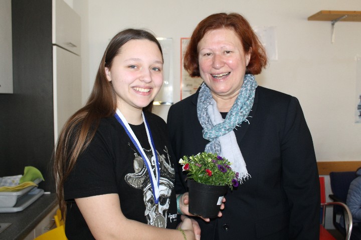 Bei der Siegerehrung erhielten alle Teilnehmerinnen eine Medaille, eine Urkunde sowie einen Sachpreis, obendrein gab es Pokale für die Besten. Diese erhielten sie aus den Händen von der 2.Bürgermeisterin Gertrud Heßlinger, die gerne wieder vorbeischaute, um den Spielerinnen zu ihren Leistungen zu gratulieren. Dafür gab es für unseren Ehrengast ein kleines Präsent von unserer Mädchensprecherin.