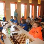 Nun wartete aber der SC Erlangen, der seine Scharte aus dem Wettkampf zuvor natürlich auswetzen wollte. Das Bild das sich den Zuschauern nach zwanzig Minuten bot, war aber aus Gastgebersicht erfreulich. Max und Leonhard hatten eine Figur mehr und Laura stand solide, einzig Vinzenz hatte gegen den Sechsten der Deutschen U10-Meisterschaft Nachteil. Er konnte die Stellung auch nicht halten und Laura musste sich ebenfalls geschlagen geben, aber Max und Leonhard sorgten für den 2:2 Endstand, womit wir auch nach dem Duell gegen den Setzlistenersten immer noch ungeschlagen waren. Zwar mussten wir die Tabellenführung an Isental abgeben, die sich gegen den SK Schweinfurt mit 4:0 durchgesetzt hatten, aber die Ausgangslage zwei Runden vor Schluss war ausgezeichnet: mit einem Sieg in Runde sechs wäre der Podestplatz bereits sicher gewesen.