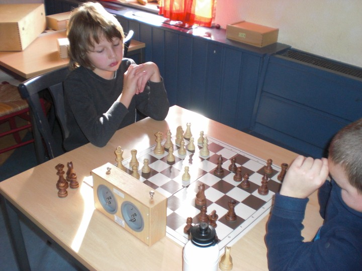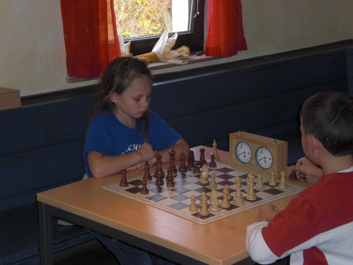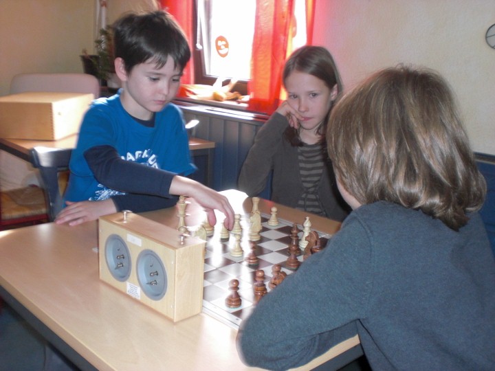 In der U12 waren Eva, Paul und Johannes am Start. Während Eva gute Podiumschancen hatte, sollten Paul und Johannes in erster Linie Spielpraxis sammeln. Gleich in Runde eins kam es zu einem denkwürdigen Duell zwischen Eva und Paul. Eva eroberte dank einer Fesselung im Mittelspiel eine Figur und opferte anschließend eine Qualität um die Damen zu tauschen. So entstand ein Endspiel mit S+L+4B gegen den blanken Turm. Doch Paul kämpfte und nutzte die Chancen die ihm Eva erlaubte. So ging Bauer um Bauer verloren und auch den Springer hätte Paul per Fesselung erobern können. Mit ablaufender Bedenkzeit fanden beide nicht immer die besten Züge, so blieb Eva der wichtige Freibauer übrig und am Ende fiel überraschend bei Paul die Zeit, wohingegen Eva noch drei Minuten übrig hatte (es war die mit Abstand längste U12 Partie des ganzen Turniers…). Johannes eröffnete gegen Tamina Männer (NT) zu zaghaft und überließ ihr den Angriff. Beiden unterliefen immer wieder Ungenauigkeiten, die Bauern hätten kosten können, doch am Ende setzte sich die Erfahrenere durch.