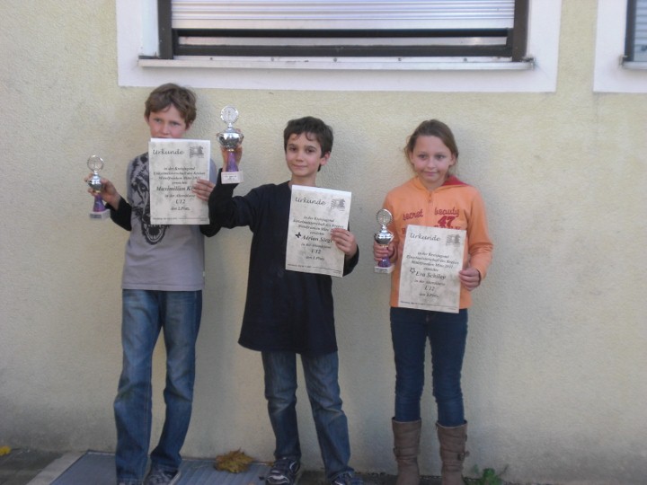 - Siegerehrung U12: Maximilian Körber (Stein), Adrian Siegl (Süd) und Eva Schilay