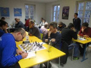 Relativ schnell gab es die erste Entscheidung an Brett 7, wo Matthias Bothe mit den schwarzen Steinen seinen Gegner bereits in der Eröffnung unter Druck setzen konnte. Nachdem er einen Bauern gewonnen hatte und den Gegner zwang seinen König auf d2 und somit offen in der Mitte zu verbleiben, nahm die Partie nach einem Figurengewinn ein rasches Ende, souveräner Sieg. (1-0)