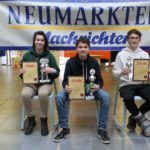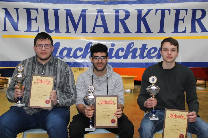 Johannes hatte sich nur zum Auftakt Markus geschlagen geben müssen und holte danach drei Siege und drei Unentschieden. Timon verpasste zum Abschluss gegen Maximilian P eine gute Chance und landete als Zehnter mit 3,5 Punkten auf seinem Setzlistenplatz. Paul Spangler kam schwer ins Turnier, kämpfte sich aber mit 3,5 Zählern noch auf Rang 19 nach vorne. Daiana Burger belegte als drittbestes Mädchen mit drei Punkten Platz 22 und Niklas Rebler hielt gegen die starke Konkurrenz gut mit und kam mit 2,5 Zählern auf Rang 24.