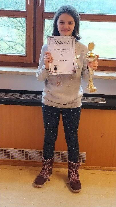 Bei den U10 Bezirksmeisterschaften gehörte Laura Sophie Bauer zum Kreis der Favoriten und startete mit zwei souveränen Erfolgen. In Runde drei versäumte sie es eine Angriffsdiagonale zu schließen und nachdem der verteidigende Springer weggejagt wurde, schlug es auf f7 ein. Doch schon zwei Züge später hatte sie für ihren Turm eine Figur erobert und war obendrein im Angriff. Bald kam ihre Dame auf die zweite Reihe und letztlich verblieb sie mit einem Turm mehr auf dem Brett. Am zweiten Turniertag eroberte Laura gegen ihren direkten Verfolger im Mittelspiel entscheidendes Material und behielt ihre weiße Weste. Zum Abschluss kam es zu einer Neuauflage des „Laura-Duells“ gegen Laura Kristin Krause (SC Forchheim). Diese lag mit drei Punkten auf Rang zwei – zwei Mädchen auf den Plätzen eins und zwei bei der offenen Meisterschaft, ein sehr schönes Tabellenbild. Die Partie wurde mit heterogenen Rochaden scharf angelegt, wobei Laura Sophie schneller zum Angriff und dadurch entscheidend in Vorteil kam. Damit holte sich Laura Sophie drei Wochen nach dem Sieg bei den Bezirks-Mädchenmeisterschaften nun auch den U10-Titel in der offenen Meisterschaft und das mit perfekten 5/5!