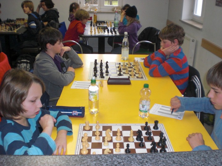 Die erste Doppelrunde der U14 Bezirksmannschaftsmeisterschaften trugen wir im heimischen Gesindehaus aus und zum Auftakt ging es gegen Zabo-Eintracht Nürnberg, die erstmals ein U14 Team ins Rennen schickten. Dabei gingen wir in der Aufstellung Simon Drechsel, Lorenz Schilay, Eva Schilay und Timon Götz leicht favorisiert in den Wettkampf. Schon nach wenigen Zügen profitierte Timon vom Damensteller seines Gegenübers und brachte die Partie sicher nach Hause. Nur kurze Zeit später gab es ein überraschendes Kurzremis an Brett 1. Simon hatte gegen den Zabo Shooting Star Ruben Mantel im 13. Zug einen Bauern gewonnen und die Gelegenheit zum Remisgebot genutzt, auch wenn man mit dem gesunden Mehrbauern natürlich hätte weiterspielen können… Nur unwesentlich später gab es das nächste Remis zwischen Lorenz und Hans Mantel und erneut hatte derjenige mit Mehrmaterial geboten. Und Hans hatte nicht nur einen Bauern mehr, sondern obendrein eine ganze Qualität, da Lorenz in einen Abzugsangriff gelaufen war. Glücklicherweise dachte Hans, dass er in der folgenden Variante eine Figur verlieren würde und bot daher Remis. Allerding hätte er bei korrektem Spiel sein Mehrmaterial gehalten, so dass der halbe Punkt für Lorenz sehr schmeichelhaft war. Eva hatte in typischer Manier lang rochiert und griff den kurz rochierten König des Gegners an. Zwar übersah sie einen möglichen Damengewinn und eroberte „nur“ die Qualität, doch alles sah nach dem erhofften Auftaktsieg aus. Doch dann ließ Eva gefühlte 20 Gewinnwege aus (es wurden quasi mehrere Elfmeter ohne Torwart verschossen…) und es kam wie es kommen musste: die erste taktische Chance für den Gegner wurde prompt genutzt und Eva verlor tatsächlich noch die Partie.