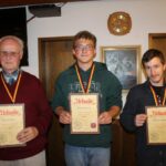 Danach wurden Josef Lehmeier und Lothar Beyer für ihre zehnjährige Mitgliedschaft geehrt. Eine goldene Ehrennadel erhielt Wolfgang Brunner der bereits seit 40 Jahren dem Schachklub die Treue hält. Dabei ist er seit 1991 in der Vorstandschaft aktiv, war von 1991 bis 2013 22 Jahre lang zweiter Vorsitzender des Vereins und bekleidet seit 2013 das Amt des Materialwarts. Der dreifache Vereinsmeister und Stadtmeister von 2004 ist auch sportlich eine wichtige Säule des Vereins, u.a. als langjähriger Stammspieler der ersten Mannschaft, deren Mannschaftsführer er seit 2001 ist. Wolfgang ist bei allen Vereinsaktivitäten mit helfender Hand dabei und mit seiner liebenswerten Art eine Bereicherung für den Verein. Für all das langjährige Engagement am und neben dem Brett herzlichen Dank!