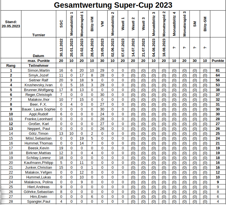 Da die VM ja ein Teil des Super-Cups 2023 ist, gibt nun au hier einen neuen Stand:
