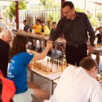 Anlässlich seines 100jährigen Jubiläums lud der SC Bechhofen zu einer Simultanveranstaltung mit GM Michael Prusikin und WGM Jana Schneider. Unter den 23 Gegnern von Michael Prusikin befand sich auch Laura Sophie Bauer, die eine der wenigen war, die dem GM ein Remis abnehmen konnte. Dabei hatte Laura kurz vor der Punkteteilung sogar die Chance den Großmeister in arge Bedrängnis zu bringen.