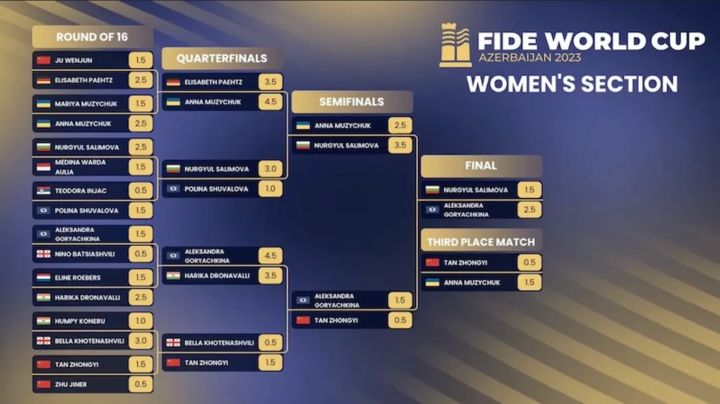 Magnus Carlsen hat zum ersten Mal das World-Cup-Finale erreicht, musste gegen Nijat Abasov in Partie eins aber an einer Stelle einen kritischen Moment überstehen. Fabiano Caruana war in der ersten Tie-Break-Partie drauf und dran in Führung zu gehen, verpasste jedoch seine Chance, während Praggnanandhaa in Partie drei seine Gelegenheit nutzte. Im Damenfinale stand Nurgyul Salimova sowohl in Partie zwei, als auch in der ersten Tie-Break-Partie klar besser, konnte aber den Sack nicht zumachen und so ergriff Aleksandra Goryachkina ihre Chance und sicherte sich den Titel. Anna Muzychuk bezwang Tan Zhongyi mit 1,5:0,5 und qualifizierte sich somit für das Kandidatinnenturnier 2024.