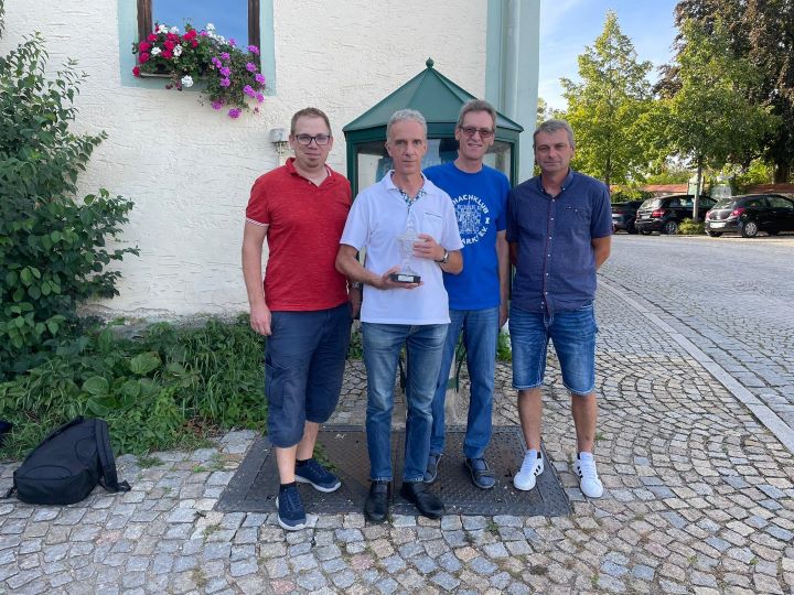Mit großer Freude nahm Mannschaftsführer Wolfgang Brunner den Pokal und das Preisgeld in Empfang. Was aber noch viel wichtiger ist : als Tabellendritter sind wir aufgestiegen und 2024 für die Oberliga qualifiziert !