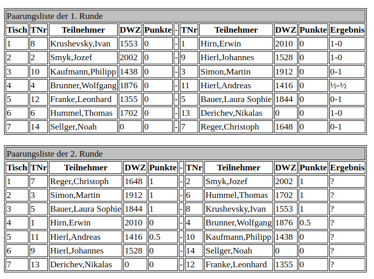 Immerhin 14 Teilnehmer fanden sich gestern zum Start der Neumarkter Stadtmeisterschaft im Gesindehaus ein. Das ist zwar weit entfernt vom Rekord, rekordverdächtig aber die 7 U-18 Teilnehmer, angeführt von Vereinsmeisterin und amtierender Deutscher Schach-Amateurmeisterin der Gruppe D Laura Sophie Bauer, den bei den Deutschen Meisterschaften stark aufspielenden Christoph Reger, Andi Hierl und Leonhard Franke, sowie dem stark einzuschätzendem Ivan Krushevsky und den Turnier-Neulingen Noah Sellger und Nikalas Derichev.