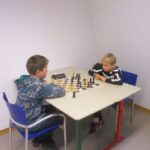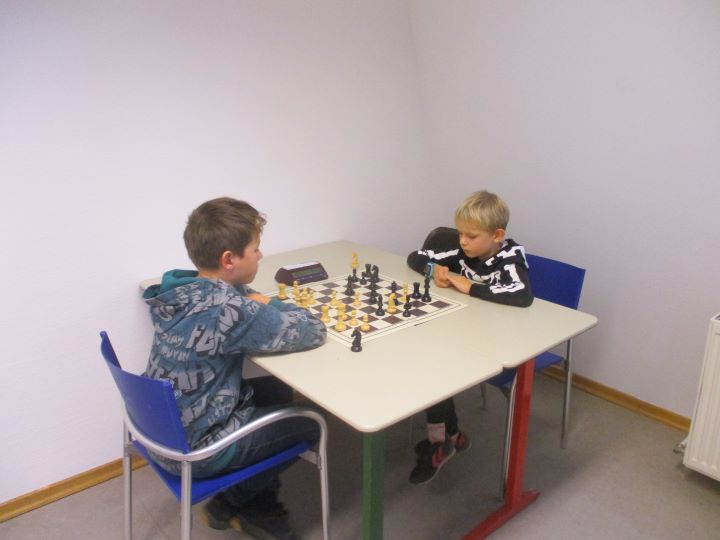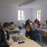 Die diesjährige Jugendstadtmeisterschaft wurde wieder in zwei Gruppen ausgetragen. In der Gruppe I traten leider nur drei Spieler an, die doppelrundig spielten. Nach dem ersten Durchlauf hatte jeder einmal gewonnen und einmal verloren, so dass schon zu befürchten war, dass es Stichkämpfe benötigen würde um den Sieger zu küren. Doch sowohl André Stettinger als auch Theo Markert konnten im zweiten Durchgang gegen Felix Sörgel gewinnen, so dass es ein Endspiel um den Titel zwischen den beiden gab. Theo hatte im Turmendspiel noch seinen a-Bauern und als André den Turmtausch zuließ, hätte Theo mittels Bodycheck seinen Bauern durchbringen können. Aber er zog zu früh mit dem Bauern und so konnte André auf direktem Weg seinen Monarchen ins rettende Eck befödern. Damit waren beide punktgleich, aber Theo hatte dank seines Erfolgs über André in der ersten Partie die bessere SoBe.