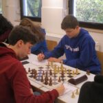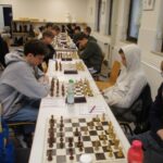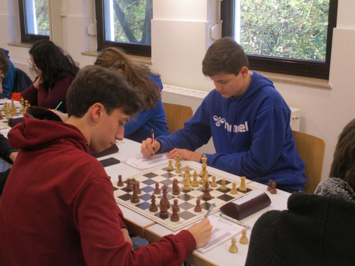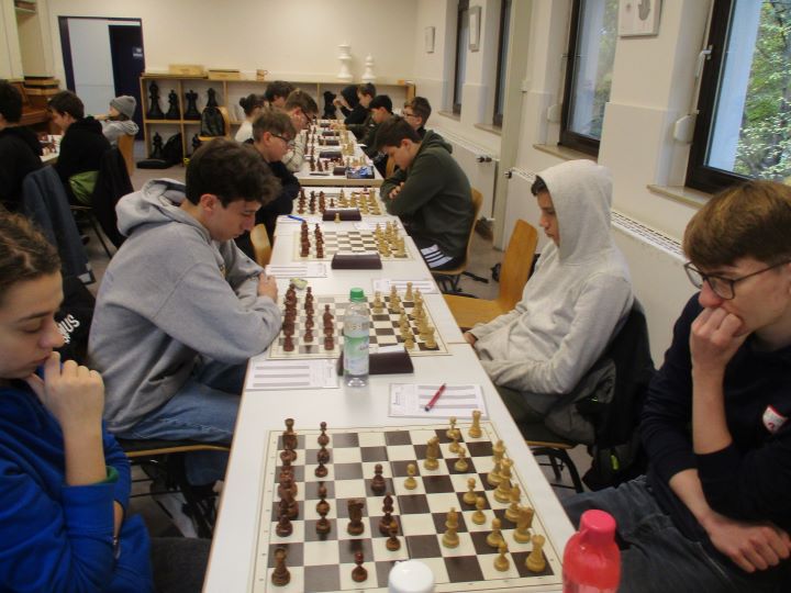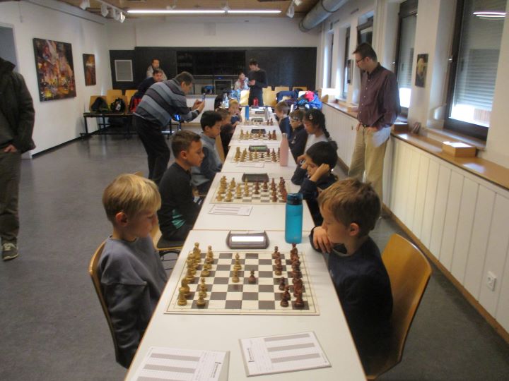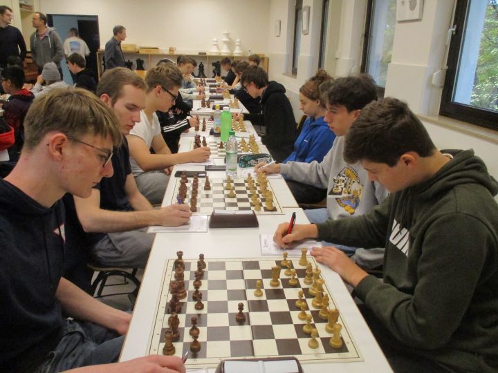 DIe U16 und U18 spielten ein gemeinsames Turnier in einem erfreulicherweise großen 18-köpfigen Feld (7x U18, 9x U16). Christoph war an #2 gesetzt, Andreas und Leonhard an #7 und #9, was #4 und #5 in der U16 bedeuetete. Alle drei waren damit in der oberen Setzlistenhälfte und somit in der Auftaktrunde nomineller Favorit. Andreas fuhr den ersten Punkt am Schnellsten ein, nachdem sein Gegenüber in Zug 11 eine Figur stehen gelassen hatte. Auch Leonhard war mit drei Mehrbauern auf einem guten Weg, verlor dann aber seinen Springer. Mit je einem Turm auf dem Brett wäre er in Schwierigkeiten gekommen, nach dem Turmtausch waren Freibauern auf verschiedenen Flügeln zu viel für den gegnerischen Springer. Christoph komplettierte mit einem souveränen Sieg den perfekten Auftakt.