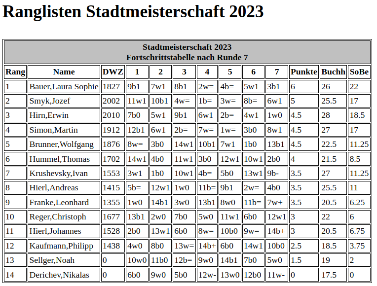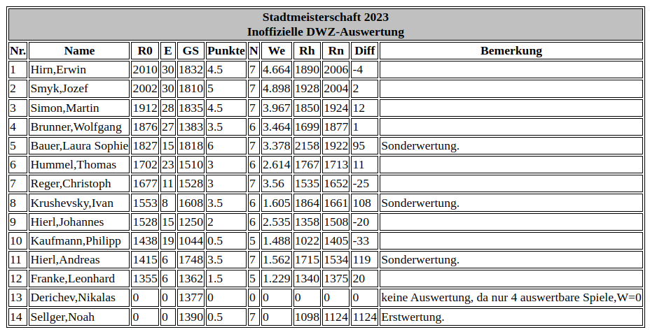 Ein bitteres Ende für Andi, der ein Superturnier spielte und mit einem DWZ-Zuwachs von fast 120 Punkten erfolgreichster DWZ-Sammler war.
