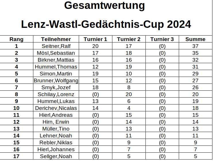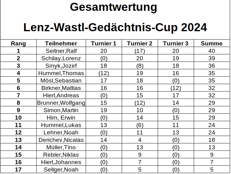 Mit seinem zweiten Turniersieg ist Ralf damit auch Wastl-Cup-Sieger 2024! Herzlichen Glückwunsch!
