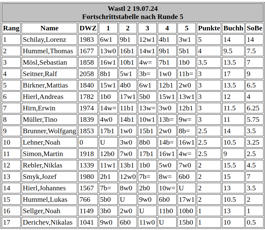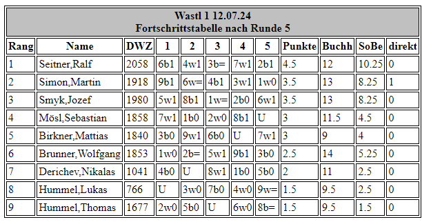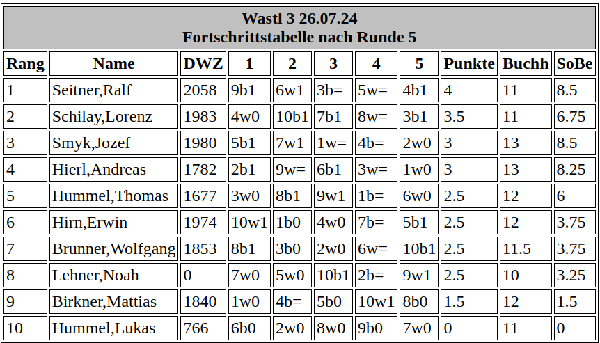 Immerhin waren namhafte Vertreter wie Seitner, Simon, Smyk, Mösl, Brunner und Birkner vertreten, um im fünfrundigen Schnellschachturnier (15 Minuten + 5 Sekunden Inkrement) die ersten 20 Punkte der Turnierserie auszuspielen.