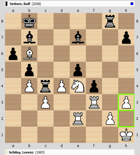 Nach Lorenz Fehler 34. h3? hätte Ralf mit dem schwierigen 34…Tg6!