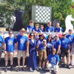 Am traditionellen Volksfestzug nahmen dieses Jahr 108 Gruppen teil, die von ca. 25.000 Zuschauen beklatscht wurden. Auch wir hatten wieder einen Wagen mit Schachmotiven geschmückt und an zwei Demo-Brettern wurden während des Umzugs Partien gespielt.