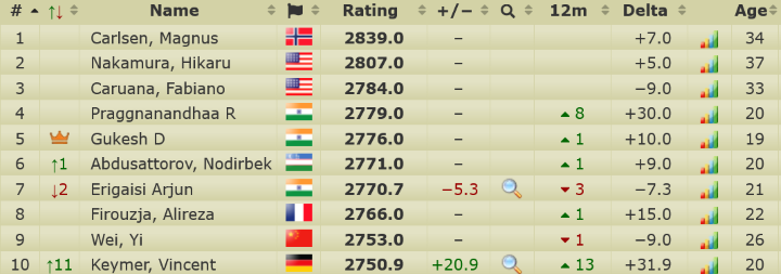 Deutschlands Nummer eins Vincent Keymer steht eine Runde vor Schluss als Sieger des Chennai Grandmasters Chess 2025 fest. Mit 6/8 und einer Leistung von 2891 spielt er ein bärenstarkes Turnier. Mit 2747 erreichte er einen neuen ELO-Höchstwert und kletterte in der Weltrangliste von Rang 21 auf 10. Zuletzt war mit Robert Hübner im Januar 1987 ein Deutscher in den Top-10.