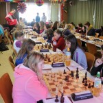 Nach der Mittagspause hatte Team I spielfrei und Team II musste gegen Bechhofen ran. Eva spielte in der Eröffnung zu zaghaft, ansonsten hätte sie leichte Vorteile gehabt. Am Ende war es erwartungsgemäß eine klare Sache für den Favoriten, was auch in der folgenden Runde gegen Mainaschaff nicht anders war. Spannend verlief dagegen der Kampf unserer Ersten gegen Ilmmünster. Man führte ja bereits kampflos 1:0 und sowohl Eva als auch Maria hatten eine Mehrfigur. Maria baute diesen Vorteil auf einen ganzen Turm aus und setzte ihre nominell deutlich stärkere Gegnerin zur Begeisterung der Zuschauer zielgerichtet matt. Eva dagegen hatte ihren Vorteil wieder hergeben müssen und mittlerweile einen Bauern weniger. Marie war in schwieriger Stellung nahe der Minutengrenze und diesmal behielt die Gegnerin die Übersicht, tauschte die Schwerfiguren und setzte auf ihr Freibauernpaar. Letztlich ging Marie die Zeit aus, die Stellung wäre aber auch so nicht mehr zu halten gewesen. Eva strapazierte derweil die Nerven der Trainer gewaltig, da sie auch bei drei gegen fünf Minuten in übersichtlicher Stellung für jeden Zug mindestens 20 Sekunden investierte. So machte sie es ihrere Gegnerin leicht die vorteilhafte Stellung runterzuspielen, nicht in die aufgestellte Mattfalle zu tappen und am Ende auf Zeit zu gewinnen. Dennoch war das 2:2 ein Big Point im Kampf um Rang drei, da sich nun ganz neue Möglichkeiten auftaten. Zwei Siege aus den letzten drei Runden würden reichen und man traf noch auf Gräfelfing und Vaterstetten, wo man jeweils favorisiert war.