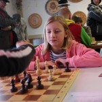 Vaterstetten hatte in der vorletzten Runde gegen unsere Zweite den ersten Sieg eingefahren und ging als Außenseiter in das Duell mit der Ersten. Aber der Tag hat ja gezeigt, dass das überhaupt nichts heißen muss und es wurde natürlich spannender als es unsere Nerven eigentlich vertragen… Denn ausgerechnet jetzt ließ sich Fabienne vom schnellen Zugtempo ihrer Gegnerin anstecken mit der Konsequenz, dass sie nach drei Minuten völlig unnötig matt gesetzt wurde. Erschwerend kam hinzu, dass Eva und Marie jeweils einen Bauern weniger hatten. Dafür stand Maria besser undf eroberte bald eine Figur, aber wir mussten ja gewinnen und vorne tippte ich eher auf zwei Remis, denn der jeweilige Minusbauer blieb bei beiden bestehen. Doch dann kam die erhoffte Wende: die Gegnerin von Marie nahm im Turmendspiel einen zweiten Bauern, vernachlässigte aber ihre Grundreihe und somit kam Marie zum zweiten Mal zum Grundreihenmatt. Eva hatte aktives Figurenspiel und war im Angriff, so dass ihre Gegnerin ein Remisgebot annahm. Nun musste Maria ihre überlegene Stellung nur noch gewinnen, was sie gewohnt unaufgeregt erledigte. Nach dem Matt war die Freude bei unseren Mädels natürlich riesengroß, denn durch den 2,5:1,5 Sieg war der dritte Platz amtlich!