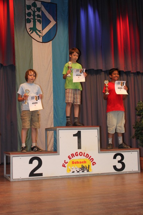 Maria startete in der U8 exzellent ins Turnier und gewann die ersten vier Partien ehe sie zum wiederholten Mal auf Maximilian Lohr (TSV Mainburg) traf, der bis dato ebenfalls eine weiße Weste hatte. Im direkten Duell der beiden konnte sich keiner nennenswerte Vorteile erspielen, so dass bis ins Endspiel alles ausgeglichen war bis auf die Zeit, die Maria schlichtweg ausging. In der folgenden Runde bezwang Maria den Setzlistenersten Thomas Loreth (Oberndorf/Laufen), amtierender Österreichischer U8 Vize-Meister und WM Teilnehmer im November dieses Jahres. Da gleichzeitig Maximilian überraschend gegen Vitalia Khamenya (SK Gräfelfing) verlor, gehörte Maria vor der letzten Runde einem Spitzentrio an. Während Maximilian seine Partie gewinnen konnte, trafen die beiden Mädels im direkten Duell aufeinander. Maria hatte mit einer Mehrfigur alle Vorteile in der Hand und selbst als sie diese wieder verlor, hatte sie immer noch drei Mehrbauern. Doch im Bestreben einen davon umzuwandeln, übersah Maria eine Mattmöglichkeit ihrer Gegnerin. Schade – die Unaufmerksamkeit kostete den Turniersieg und Maria belegte am Ende mit 15 Punkten Rang vier.