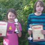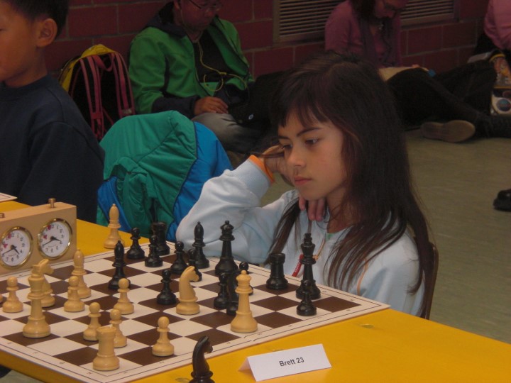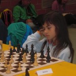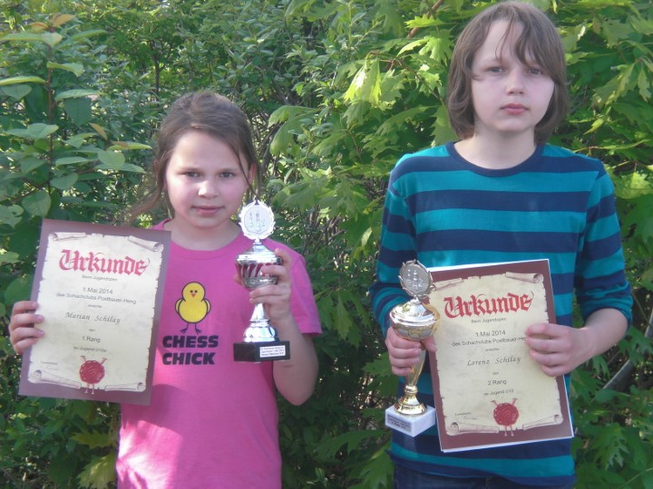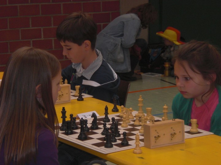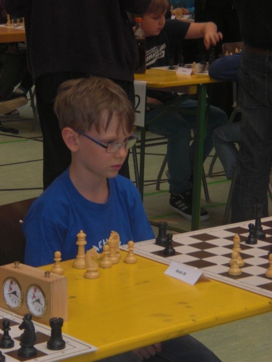 Maria traf nach zwei Siegen in der dritten Runde der U10 auf einen alten Bekannten in Person von Sebastian Astner (FC Ergolding). Sebastian hatte dank starker Läufer eine sehr aussichtsreiche Stellung doch Maria gelang es sich zu befreien und gewann einen Bauern. Diesen gab sie jedoch unnötigerweise wieder zurück und als am Nachbarbrett die große Diskussion losging verlor Maria vollends den Faden und stand bereits auf Matt. Sebastian machte es aber noch spannend, spielte eine sechszügige Königswanderung und setzte Matt eine Sekunde bevor sein Blättchen fiel… In Runde vier gewann Maria problemlos und traf dann auf den Setzlistenersten Jon Englert (TV-Großostheim 1900). Wiederum überließ Maria dem Gegner das aktivere Spiel, hielt die Partie aber bis ins Turmendspiel ausgeglichen. Dort ging dann ein Bauer verloren und das entschied zu Gunsten von Jon. Die letzten beiden Runden gewann Maria souverän womit sie sich mit fünf Punkten auf Platz neun klassierte. Dies reichte um 1,5 Buchholzpunkte für den Sieg in der Mädchenwertung vor der punktgleichen Liliane Pavlov (Regensburger Turnerschaft).