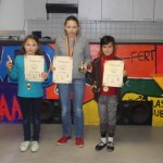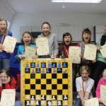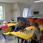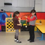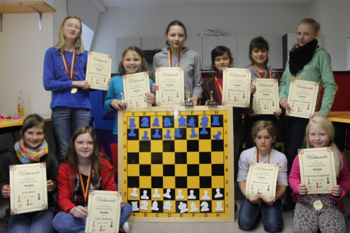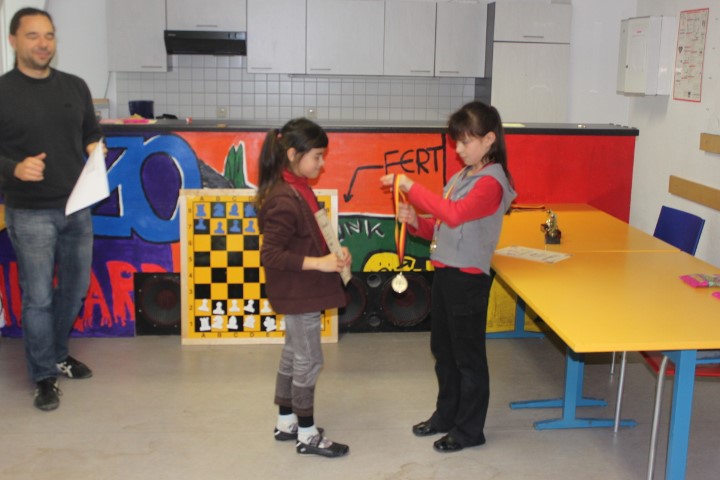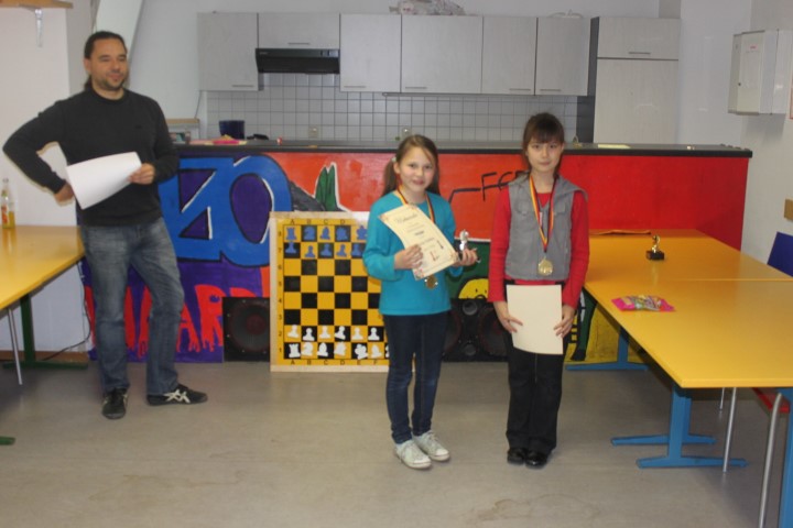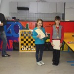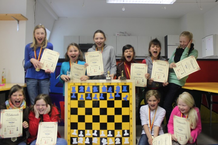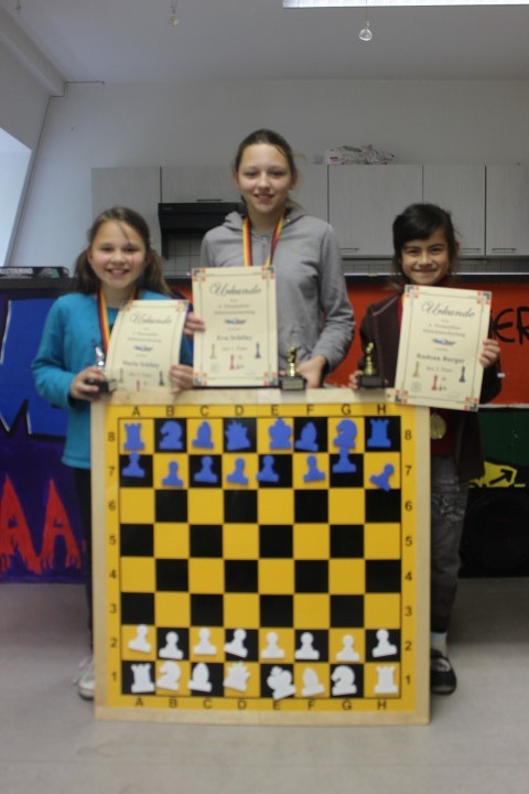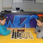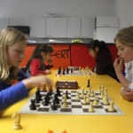 Der Mädchenschachtag startete wie immer mit einem Schachturnier, wobei diesmal neun Runden mit einer Bedenkzeit von 20 Minuten gespielt wurden (zumindest theoretisch 20 Minuten…). Als klare Favoriten gingen Eva und Maria Schilay ins Rennen, die in Runde zwei aufeinander trafen. Zunächst stand Eva dank Raumvorteil etwas besser, doch dann befreite sich Maria zusehends. Mit beginnender Zeitnot sah Maria eine Springergabel erst als sie schon eine Figur in der Hand hatte und verlor eine Qualität was sich Eva nicht mehr nehmen ließ. Neben Eva hatte nur noch Radena Burger beide Partien zum Auftakt für sich entscheiden können und in der dritten Runde kreuzten sich ihre Wege mit dem besseren Ende für Eva. Derweil kam die vereinslose Eva Bärtl zu ihrem ersten Sieg gegen Patricia Schächtel.