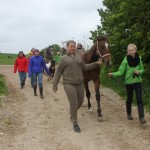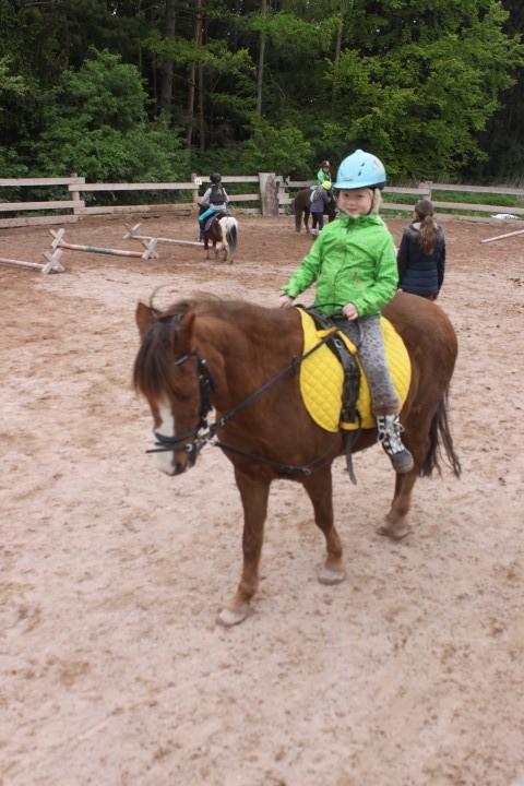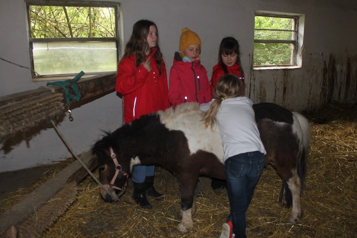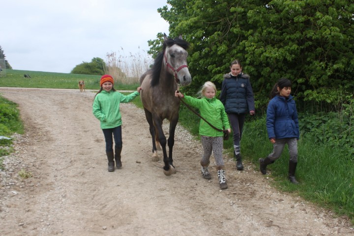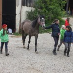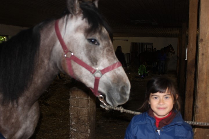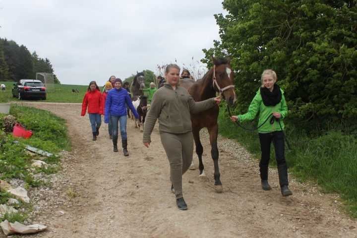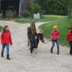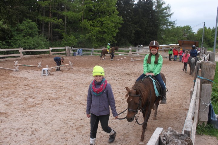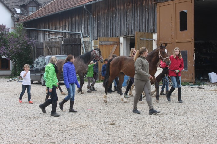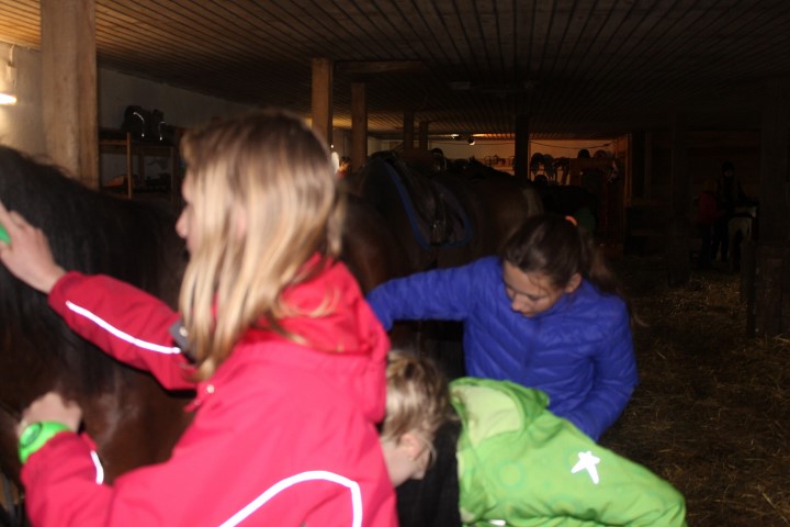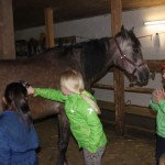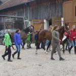 Direkt im Anschluss fuhren wir nach Hellberg zum Reiterhof von Familie Franke. Nach einer kurzen Einweisung durch die drei Trainingsassistentinnen Lisa-Marie, Celina und Nele ging es in den Stall wo zunächst Pferdepflege und Bodenarbeit auf dem Programm stand. Danach wurden die Pferde einige kleine Runden über den Hof geführt ehe sie gesattelt wurden und es auf den Übungsplatz ging wo beim Longenunterricht alle Mädels die Gelegenheit bekamen auf einem Pferd zu reiten. Währendessen flüchteten die männlichen Betreuer bei einstelligen Temperaturen und gefühltem Wintereinbruch (wie gut dass wir letztes Jahr bei strahlendem Sonnenschein im Museum waren…) in die warme Stube zum heißen Tee… Somit verpassten sie auch den abschließenden circa 45-Minütigen Ausritt auf der Waldrunde. Nach knapp dreieinhalb Stunden auf dem Reiterhof endete der 4. Neumarkter Mädchenschachtag mit vielen zufriedenen Gesichtern und der Hoffnung auf ein baldiges Wiedersehen.