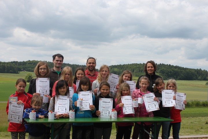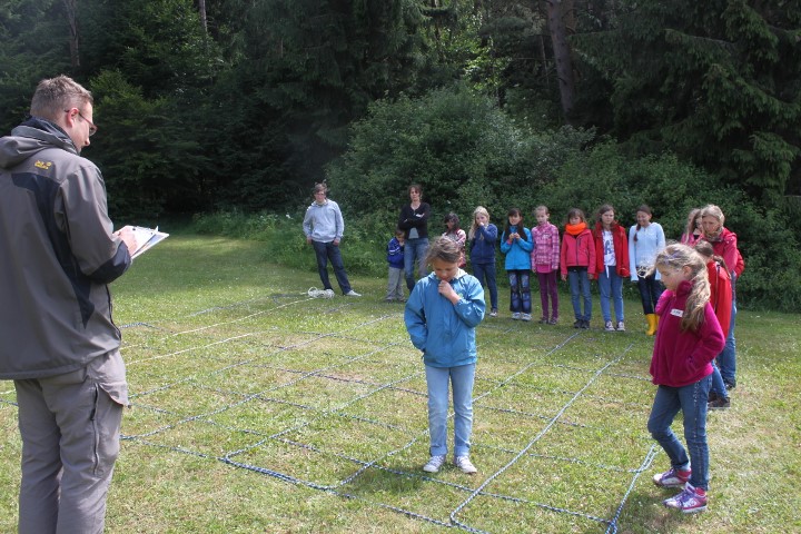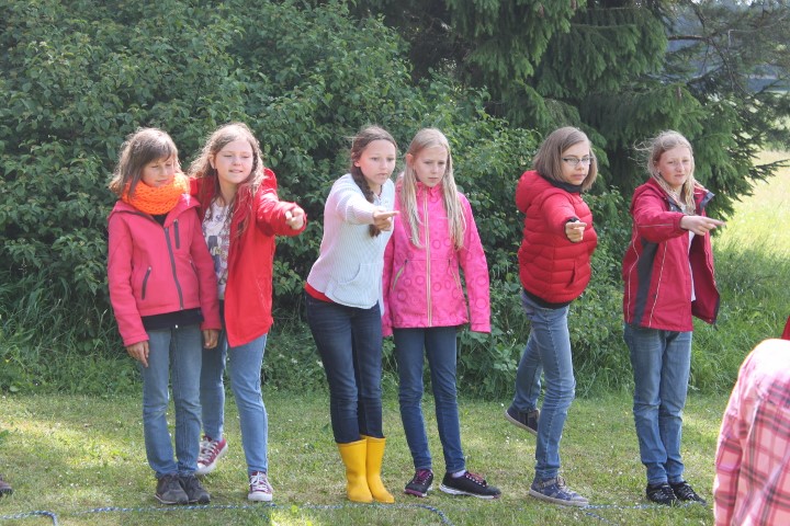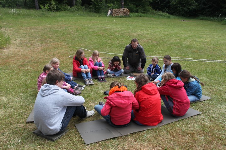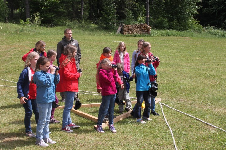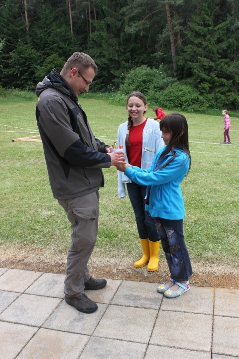 Er erklärte die Namen und Eigenarten unserer heimischen Sing- und Zugvögel, zeigte Fotos und imitierte verschiedene Vogelstimmen und zwar ziemlich gut. Mit gespitzten Ohren lauschten wir draußen auf der Wiese und versuchten die Vogelstimmen zuzuordnen. Danach ging´s dann ans Praktische mit diversen erlebnispädagogischen Spielen und Aufgaben. Die Kinder mussten sich dabei in die Lage einer Vogelschar versetzten und so verschiedene Stationen durchlaufen (Die Vogelschar sortiert sich, ein Ei wird in Sicherheit gebracht, eine Flugroute wird gefunden, ein Wurm wird ins Nest gelegt, gemeinsames Fliegen…), bei denen deutlich wurde, wie wichtig Absprachen, gut zuhören und Konzentration sind, natürlich kein Problem für Schachspielerinnen und solche die es werden wollen :-). So wurden alle Projekte erfolgreich bewältigt. Gegen 17 Uhr verabschiedete sich der Vogelexperte Martin Schmidt von uns und wurde von den Mädchensprecherinnen des SK Neumarkt mit einem Präsent verabschiedet.