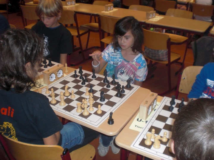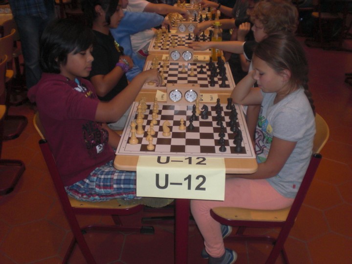 Maria Schilay und Daiana Burger trafen gleich in der ersten Runde aufeinander, obwohl die Turnierordnung in den ersten beiden Runden eigentlich keine vereinsinternen Paarungen vorsieht (gut – es wurde auch wieder munter die Buchholzsumme ansattt der Summenwertung als Drittwertung herangezogen…). Maria machte es mit zwei Mehrfiguren unnötig spannend indem sie ihren König in der Mitte ließ. Prompt legte sie Daiana einen Elfmeter auf, den diese aber nicht verwandelte und so setzte sich doch noch die Favoritin durch. Nach einem weiteren Sieg sah es für Maria auch in Runde drei gegen Fatima Youness (SF Bad Mergentheim) gut aus. Leider übersah Maria in einer Schlagkombination etwas und hatte mit einem Turm weniger keine Chance mehr. Mit zwei Siegen kämpfte sie sich bis auf Rang drei nach vorne, musste sich dann aber dem topgesetzten Alexander Brückner (SK Schweinfurt) geschlagen geben. Trotzdem war Rang drei noch in Reichweite, aber in der letzten Runde war auch Lorenz Hofmann (SV Lauf) zu stark und Maria wurde Achte. Daiana holte zwei Siege und belegte somit Platz 25.