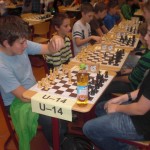 In der U14 führte Lorenz Schilay die Setzliste an und auch Paul Neppert gehörte zu den Podiumskandidaten. Beide begannen mit zwei souveränen Erfolgen, aber in Runde drei brachte Lorenz seinen Gegner Lars Goldbeck (SC Vaterstetten) mit Gewalt immer wieder in eine bessere Stellung. Dennoch war im Endspiel ein Remis immer noch das wahrscheinlichste Ergebnis bis sich Lorenz mit einem vollkommen unnötigen Bauerneinsteller endgültig auf die Verliererstraße brachte. Paul machte es indes besser und bezwang die Setzlistenzweite Melanie Grund (MTV Saalfeld) mit einem druckvollen Königsangriff. Zur Belohnung durfte er danach gegen Lorenz ran und geriet dabei früh auf Abwege. Trotz der Niederlage saß Paul in Runde fünf am Spitzenbrett gegen Lars und hielt die Partie lange im Ausgleich. Nachdem Paul etwas unnötig die Kontrolle der einzigen offenen Linie eingebüßt hatte, entschied ein taktischer Schlag zu Ungunsten von Paul. Anschließend hatte Paul das Glück des Tüchtigen, da er aufgrund eines Abzugsangriffs eine Qualität eingebüßt hatte aber von einem ungültigen Zug seines Gegenüber profitierte. In der letzten Runde holte er Sieg Nummer fünf und sicherte sich somit als Dritter seinen ersten Podestplatz bei einem Rapidturnier. Lorenz hielt sich in den letzten Runden schadlos und belegte mit sechs Zählern Rang zwei.