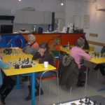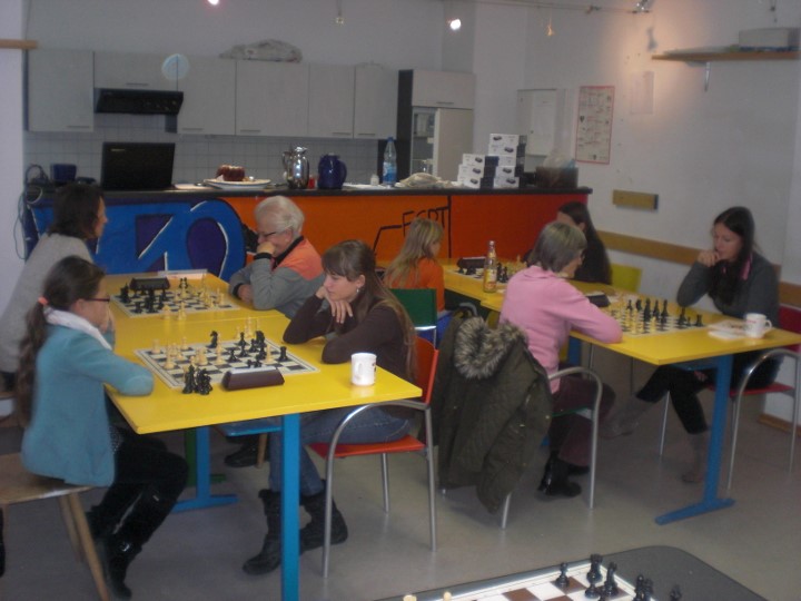 Um 10 Uhr begrüßte die Frauenschachreferentin des SK Neumarkt Angelika Schilay die acht Teilnehmerinnen und freute sich besonders darüber, dass auch drei vereinslose Spielerinnen mit von der Partie waren. Nachdem alle mit Kaffee, Tee und Kuchen versorgt waren sowie einiger organisatoischer Hinweise gab Turnierleiter Sebastian Mösl die Uhren frei und die Damen gingen konzentriert ans Werk. Gleich zum Auftakt kam es zum Duell der favorisierten Teams von Eva Schilay und Kristin Simon sowie den „Schachspielerinnen“, Maria Schilay mit Mama Angelika. Eva knöpfte im Mittelspiel ihrer Schwester einen Bauern ab und verwertete diesen Vorteil schnörkellos. Dagegen entwickelte sich am Nachbarbrett ein harter Kampf, wurde doch auf unterschiedliche Seiten rochiert. Kristin beorderte ihre Schwerfiguren auf die a-Linie, während Angelika im Zentrum dagegenhielt. Zweimal verpasste Kristin die Möglichkeit den gegnerischen Monarchen zur Strecke zu bringen, doch dann schlug Angelika zu, bot die Dame auf der Grundreihe zum Schlagen an und konnte danach wie geplant mit dem Turm matt setzen.