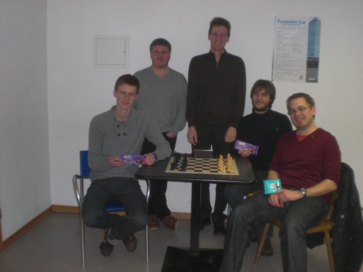 Spannend verlief die diesjährige Blitz-Stadtmeisterschaft, gleich fünf Spieler kämpften bis zum Schluss um den Turniersieg. Durchsetzen konnte sich dabei Titelverteidiger Maximilian Lutter mit 11 Punkten dank der besseren SoBe vor Kevin Beesk. Ralf Seitner komplettierte mit 10,5 Punkten das Podest. Martin Simon konnte zwar die beiden Spitzenreiter bezwingen, ließ aber gegen die anderen Titelkandidaten federn und wurde so mit 10 Punkten Vierter vor Thomas Hummel mit ebenfalls 10 Zählern.