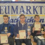 - Siegerehrung U10: Dominik Kodalle (Aschaffenburg-Schweinheim/2.), Tom Högner (SC Erlangen 48/88/1.), Christian Kraftsik (SC Vaterstetten(3.) und Lea Röll (SC Vaterstetten/Bestes Mädchen)