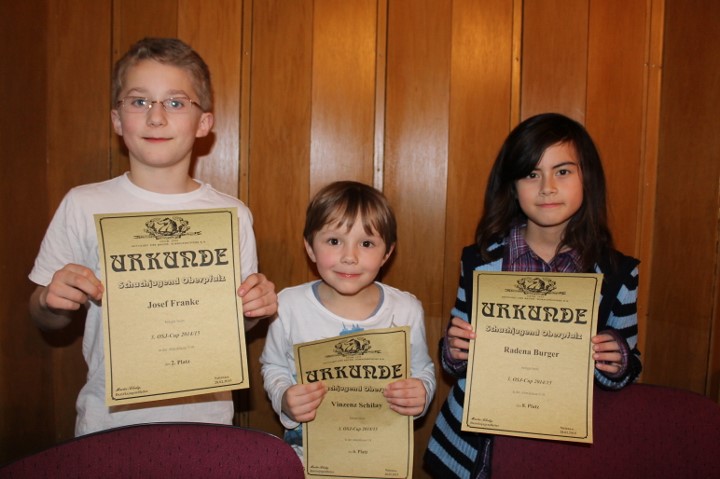 Beim dritten Turnier der OSJ-Cup-Serie in Nittenau vertraten Vinzenz Schilay, Josef Franke und Radena Burger unsere Farben. Vinzenz kam in der U8 seinem ersten Podestplatz diesmal ganz Nahe, schon ein Punkt mehr hätte gereicht. So belegte er mit 3,5 Punkten Rang sechs. In der U10 verpasste Josef einmal mehr knapp den Turniersieg. Er bezwang den späteren Sieger im direkten Duell, ließ aber zwei Punkte liegen (einen aufgrund eines ungültigen Zuges…) und wurde somit Zweiter. Radena war wieder meist im Expresstempo unterwegs und kam mit 3,5 Zählern auf Rang acht.