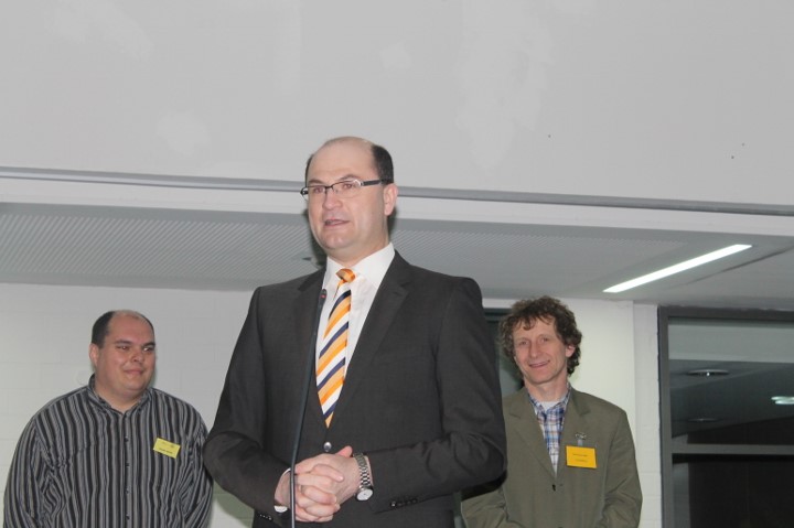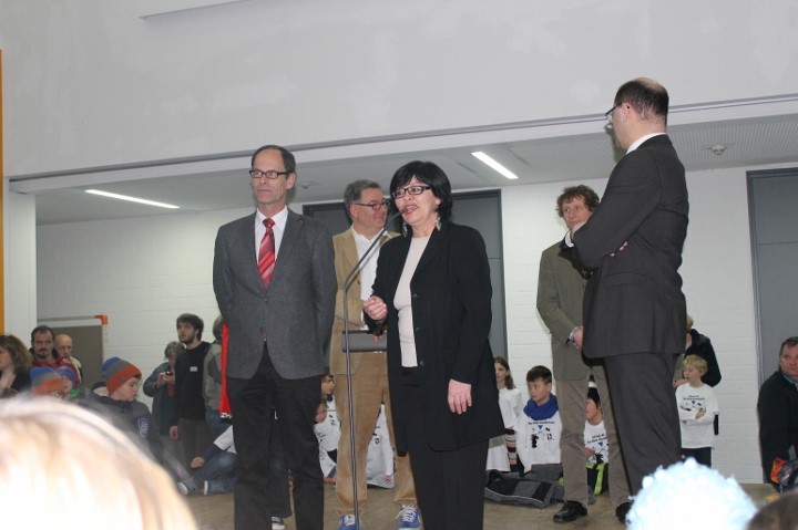 Um 10h begrüßten die Direktoren der beiden Gymnasien Ulrike Severa (OG) und Bernhard Schiffer (WGG) die zahlreichen Schachfreunde aus ganz Bayern in der Aula des Ostendorfer Gymnasiums und wünschten allen viel Erfolg. Danach sprach der Schirmherr der Veranstaltung Staatssekretär Albert Füracker ein Grußwort und freute sich darüber, dass „die wichtigste Veranstaltung in Bayern an diesem Tag“ in seinem Heim-Landkreis stattfindet. Der bayerische Schulschachreferent Walter Rädler führte im Anschluss die Ehrung der Bayerischen Schachlehrer 2015 durch und die Theo-Betz-Grundschule Neumarkt erhielt das Qualitätssiegel „Deutsche Schachschule“ überreicht. Schließlich begrüßten die Schulschachleiter Franz Xaver Beer (WGG) und Jürgen Goth (OG), die für die Organisation hauptverantwortlich zeichneten, die Anwesenden und starteten das Turnier.