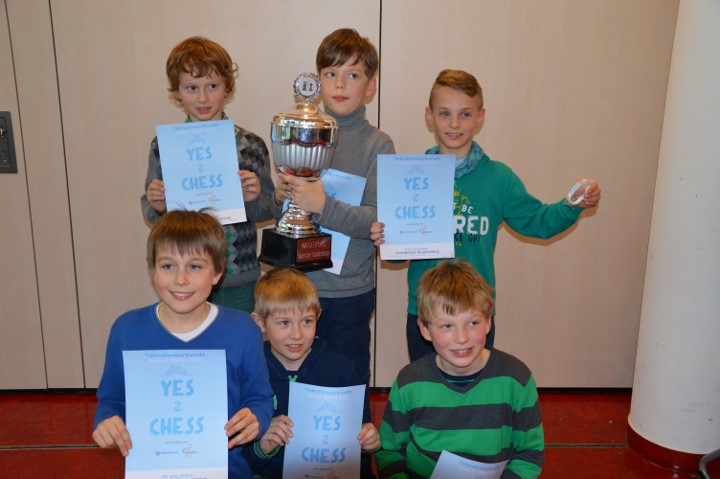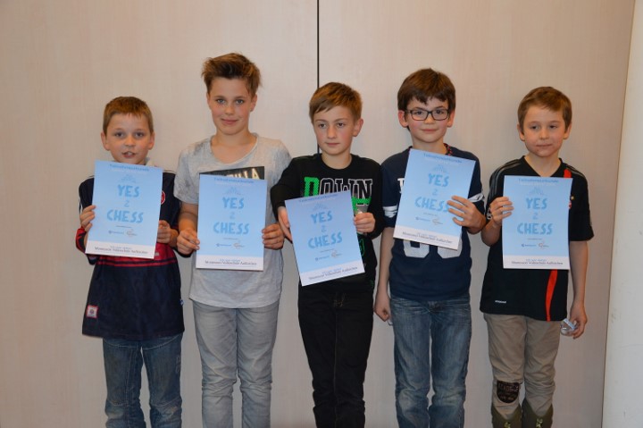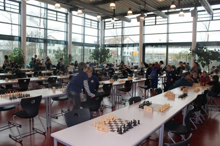 Der offene Bayerische Grundschul-Cup für vereinslose Spieler wurde wieder im Rahmen der Aktion „Yes2Chess“ von Barclaycard durchgeführt. 16 Mannschaften kämpften in sieben Runden Schweizer-System in der Mensa der beiden Gymnasien um die Qualifikation für das Deutschland-Finale.