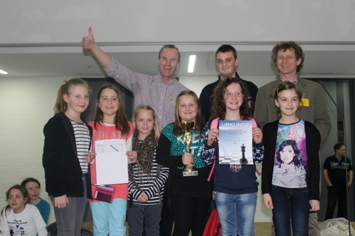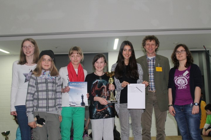 Die WK Mädchen war wie schon im Vorjahr eine reine Aschaffenburger-Angelegenheit. Das Friedrich-Dessauer-Gymnasium und das Maria-Ward-Gymnasium hatten 2014 das Feld dominiert und so war es auch in diesem Jahr. Doch während FDG im Vorjahr das direkte Duell mit 4:0 für sich entscheiden konnte, trennten sich die beiden Teams diesmal 2:2. Die restlichen Wettkämpfe wurden von beiden Mannschaften jeweils gewonnen, allerdings gab das Maria-Ward-Gymnasium dabei noch 1,5 Brettpunkte ab, wohingegen das FDG (Nadja Berger, Pauline Schnepper, Polina Fuks und Clara Schwind) alles 4:0 gewann und somit den Titel erfolgreich verteidigte. Im Kampf um Rang drei setzte sich das Albrecht-Altdorfer-Gymnasium Regensburg mit 11 Punkten knapp vor dem Gymnasium Tegernsee mit 10 Punkten durch.