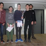 Dem Team des WGG (Elias Hegelheimer, Jonas Schmidt, Jakob Brendel und Loreal Bajgora – allesamt keine Vereinsspieler!) blieb ein Mannschaftspunkt leider verwehrt, beim knappen 1,5:2,5 gegen das Viscardi-Gymnasium Fürstenfeldbruck war man aber nah dran. Elias ließ mit einem Sieg über Michael Huber (Tegernsee/1695) sowie zwei Remis gegen Tobias Walter (MTG/1822) und Ekaterina Alferova (Fürstenfeldbruck/1153) aufhorchen, die restlichen Teammitglieder erzielten immerhin je ein Remis.