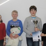 Die beste Punktausbeute an Brett 1 hatte Nicolas Mooser (GS Lengdorf) mit 8 Punkten, an Brett 2 Katharina Gubler (GS Königswiesen Regensburg) mit 8 Punkten, an Brett 3 Luisa Ibrahim (GS Rottach-Egern) mit 8 Punkten und an Brett 4 Maximilian Martin (GS Garching-West) mit 8 Punkten.