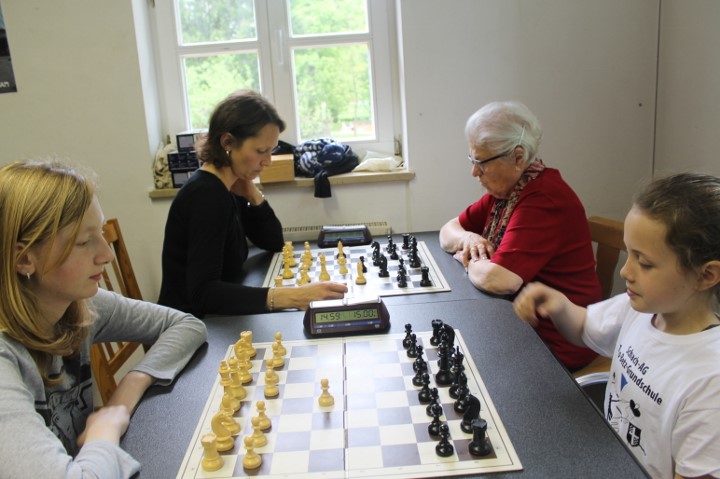 Auch für die Frauen stand ein Schnellschachturnier auf dem Programm. Hier wurde mit sechs Teilnehmerinnen, darunter drei vereinslose Spielerinnen, ein Vollrundenturnier mit jeweils 20 Minuten Bedenkzeit gespielt. Als Topfavoritin ging Eva Schilay ins Rennen und wurde dieser Rolle mit 5/5 auch souverän gerecht. Die Neumarkter Frauenschachreferentin Angelika Schilay zeigte sich wie schon beim Neumarkter Damenduett in ausgezeichneter Form und musste sich nur Tochter Eva geschlagen geben. Dritte und damit beste Nichtvereinsspielerin wurde Ute Franke mit 3 Punkten vor Andrea Voigt, Gertraud Schilli sowie nochmal Eva Schilay, diesmal die Oma von den Schilay-Schwestern.