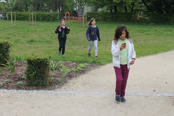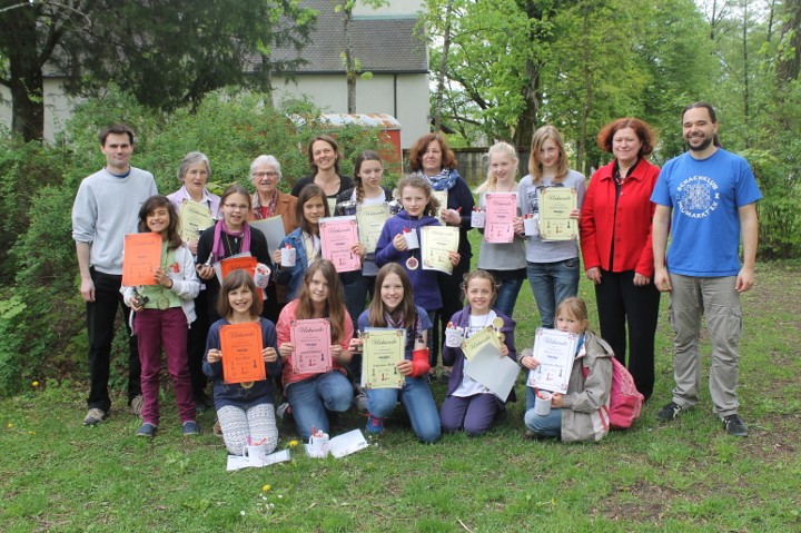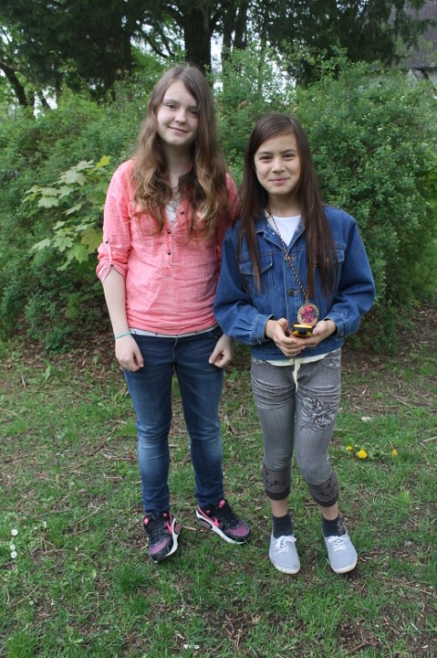 Im Anschluss setzten sich die Frauen bei Kaffee und Kuchen noch gemütlich zusammen, während für die Mädchen nun Geocaching auf dem Programm stand. Michael Held hatte zehn Schätze im angrenzenden Schlosspark versteckt, die es aufzuspüren galt. Die Schätze beinhalteten Aufgaben vom Fritz & Fertig-Rätselblock die dann noch gelöst werden mussten. Auch wenn ein kurzer Regenschauer eine Unterbrechung notwendig machte, waren die Mädels mit Feuereifer dabei die trickreichen Verstecke ausfindig zu machen. Das Team „Eva Schilay/Fabienne Held“ war dabei am erfolgreichsten und fand alle Zehn.