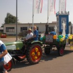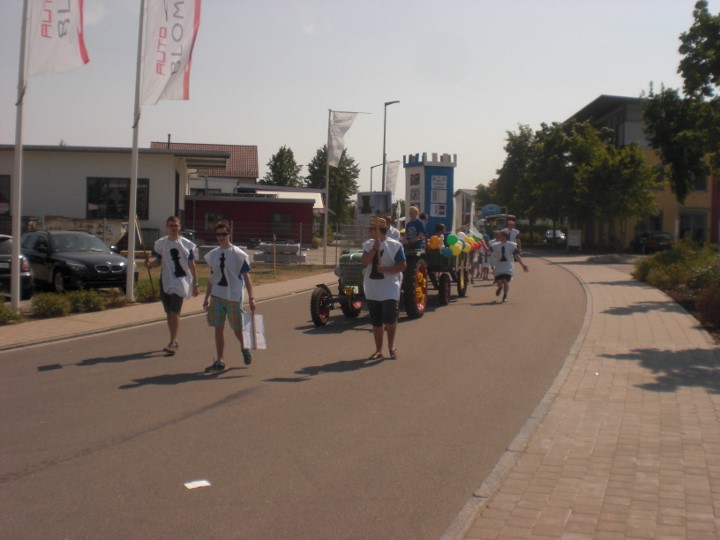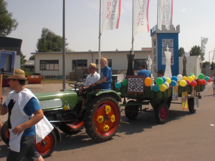 Es ist wieder Volksfest-Zeit in Neumarkt und am ersten Sonntag stand der traditionelle Festumzug auf dem Programm. 100 Gruppen scheuten die tropischen Temperaturen nicht und präsentierten den Zuschauern (ob der großen Hitze waren es diesmal weniger – aber wer mag es ihnen verdenken) viele gelungene Beiträge. Wir hatten wieder unseren 2,5m hohen Turm zusammengebastelt und warfen uns die Schach-Ponchos über (wobei bis auf eine Ausnahme die weißen Umhänge den Schwarzen vorgezogen wurden…), was auch bei der Festzug-Jury gut ankam.
