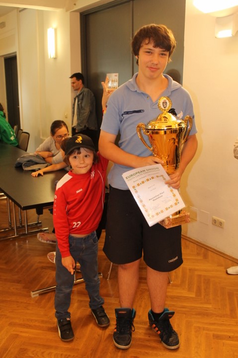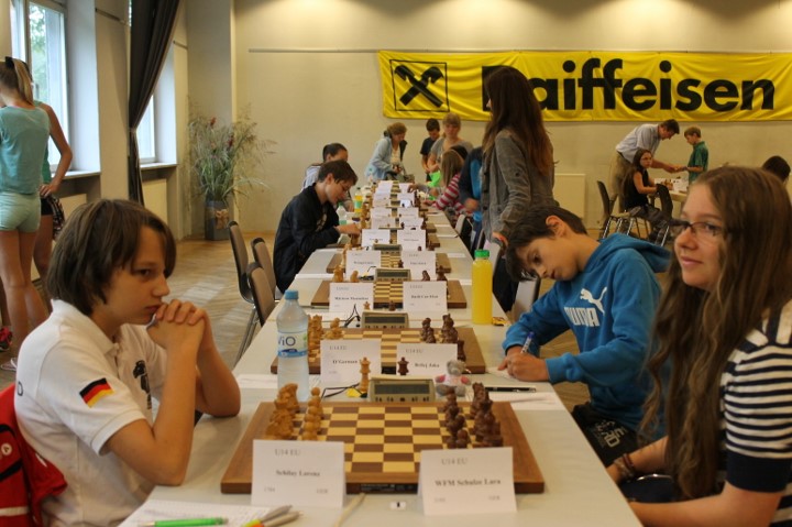 UPDATE: Die EU-Meisterschaft 2016 ist vorbei und es gab zwei deutsche Goldmedaillen und zwei äußerst unglückliche vierte Plätze für Lorenz und Eva. Max und Lorenz remisierten, womit Max den Titel absicherte. Als dann überraschend der Setzlistenerste unterlag, war Rang drei für Lorenz zum Greifen nah. Leider konnte Lara ihre Gewinnstellung in Zeitnot nicht halten, weshalb ihr Gegner noch an Lorenz vorbeiziehen konnte. Eva gewann ihre Partie, hatte nach dem Remisschluss an Brett 2 aber in Sachen Buchholz das Nachsehen. Vinzenz gewann zum Abschluss ebenfalls und kletterte somit auf Rang acht und auch Maria holte den ganzen Punkt, wohingegen Lukas eine Niederlage quittieren musste. Im Endklassement landeten die beiden auf den Rängen 20 und 22.