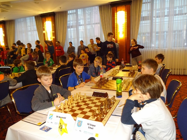 Seit der erstmaligen Qualifikation 2012 ist unser Verein jedes Jahr bei den Deutschen Vereinsjugendmeisterschaften mit von der Partie, die vom 26. – 30. Dezember stattfinden. Doch dieses Jahr schießen wir den Vogel ab. Unsere U14 Mädchen haben sich das fünfte Jahr in Folge für die Deutsche qualifiziert (das gelang sonst nur noch Empor Erfurt und Solingen), die dieses Jahr in Düsseldorf ausgetragen wird. Außerdem nimmt wieder eine U10-Mannschaft (eigentlich ist es eine U8-Mannschaft!) an der Offenen Deutschen U10 Meisterschaft vom 27. – 29. Dezember in Magdeburg teil. Vollkommen überraschend darf auch unser U12-Team zur Deutschen in Magdeburg, nachdem sich der Bayerische Meister SK München Südost und der Vize FC Ergolding für die Teilnahme in der U14 entschieden haben. Und um den ganzen noch die Krone aufzusetzen richten wir mit der U16 gleich selbst eine Alterklasse in Neumarkt aus. Zwar sind wir in allen AKs im hinteren Bereich der Setzliste zu finden, aber vier Teilnahmen und eine Ausrichtung muss man erst mal schaffen. Trotzdem wollen wir natürlich den ein oder anderen Punkt holen – drückt die Daumen!