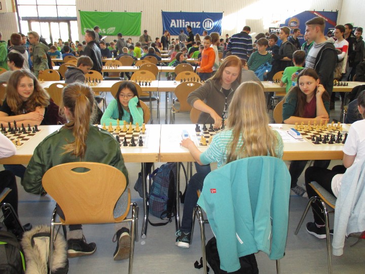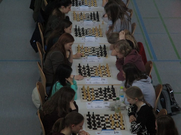 Bei den diesjährigen Bayerischen Schulschachmeisterschaften in Bindlach war das Willibald-Gluck-Gymnasium in der WK Mädchen am Start. Eva Schilay, Eva Herrmann, Nicole Mikulasch und Thea Harmel hatten wie im Vorjahr als Oberpfälzer Vize-Meister hinter dem Albrecht-Altdorfer-Gymnasium Regensburg einen Freiplatz bekommen. Diese wurden letztes Jahr Bayerischer Meister und die WGG-Mädels errangen einen bärenstarken dritten Rang. Eine Wiederholung dieses tollen Erfolgs war diesmal unwahrscheinlich und man strebte einen Mittelfeldplatz an. Über den Turnierverlauf kann leider nur wenig berichtet werden, da dieses Jahr alle Betreuer aus dem Turniersaal verbannt wurden und selbst die Spieler nach Beendigung der Partien umgehend raus mussten und keine Gelegenheit bekamen mit ihren Teamkollegen mitzufiebern. Nach neun Runden wurden die WGG-Mädels mit 9:9 Punkten Sechster. Zwei Punkte mehr gleichbedeutend mit dem anvisierten fünften Rang wären noch möglich gewesen.