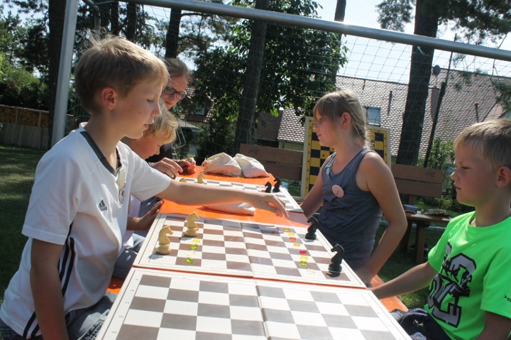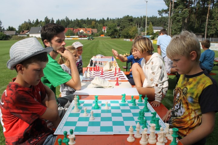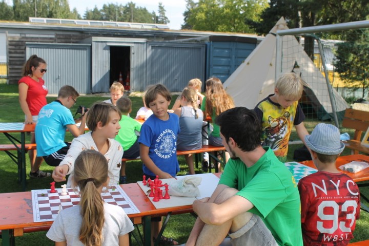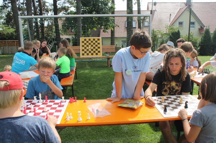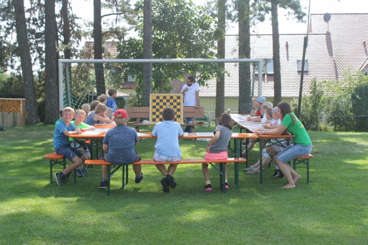 Auch in diesem Jahr gab es beim Sommercampus des Kreisjugendrings Neumarkt einen Schachtag. Vinzenz Schilay stellte den 15 Teilnehmern die einzelnen Figuren vor, deren Gangart u.a. beim allseits beliebten Gummibärchenspringerspiel geübt wurde ehe die ersten Partien gespielt wurden.